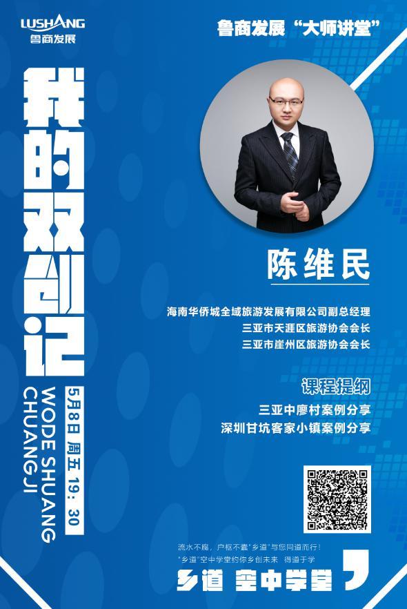 5月8日,魯商發(fā)展“大師講堂”舉辦第7期,此次講座采取線上直播形式,海南華僑城全域旅游發(fā)展有限公司副總經(jīng)理陳維民帶來《我的雙城記——華僑城新型城鎮(zhèn)化與鄉(xiāng)村振興的案例分析》專題講座。