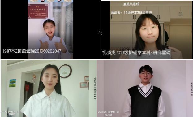 在護士節來臨之際,護理學院組織了一場特殊的線上文藝匯演,作為“5·12”護士節的獻禮。通過歌曲《想見你》、手語《平凡的天使》、朗誦《因為有你》、護士禮儀展示、繪畫《南丁格爾》、視頻《告白祖國》、寫作《致前線醫護人員的一封信》等多樣化的作品傳出青年好聲音,凝聚青春正能量,向“最美逆行者”致敬!