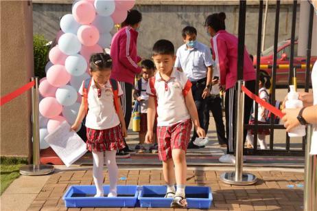早晨進(jìn)園是孩子們健康入園的第一大關(guān)。各分園每一個細(xì)節(jié)都不放過,錯峰入園流程中,從體溫檢測到小手消毒,從鞋底消毒到晨間檢查,秩序井然,順利開啟了孩子們美好的一天。