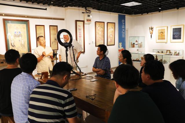 活動(dòng)利用線上直播和線下論壇相結(jié)合形式展開,青島市民間文藝家協(xié)會(huì)副主席、青島手工藝協(xié)會(huì)會(huì)長(zhǎng)、青島手工藝博物館館長(zhǎng)魯漢科普了端午節(jié)與榼子的關(guān)系和傳承淵源,講述了端午節(jié)的奇聞趣事、“五毒餅”食俗的淵源以及榼子的制作工藝。青島餑餑榼子非遺傳承人、青島市工藝美術(shù)大師王丕文現(xiàn)場(chǎng)操刀,從選材、加工和雕刻等流程上,為大眾演示了榼子的制作方法。