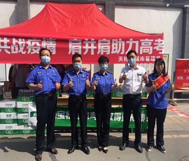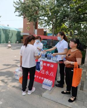 淄博高青店組織員工奔赴高青一中西門口為莘莘學(xué)子愛心送水,為考生們鼓勁加油,為在烈日下焦灼等待的家長送一份清涼!