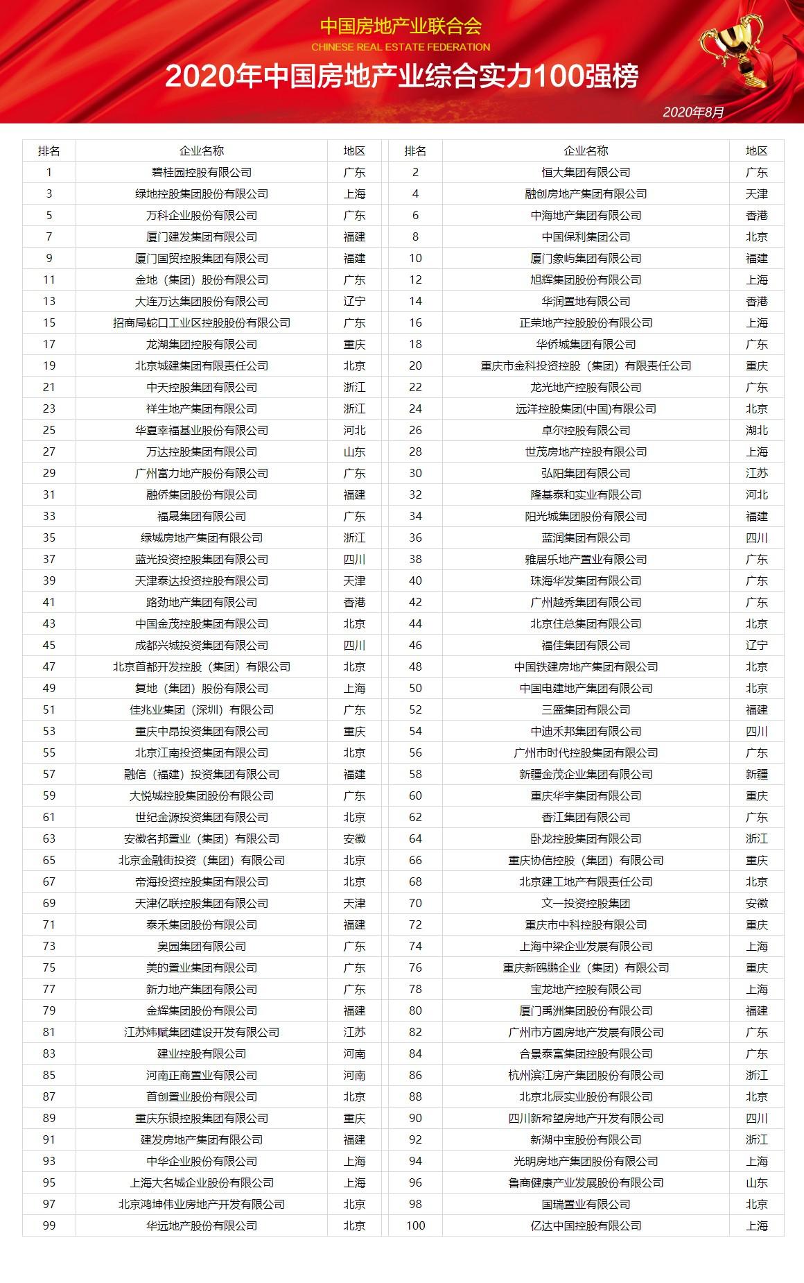 近日,2020年中國房地產(chǎn)業(yè)綜合實力100強排行榜發(fā)布,該榜單是由中國房地產(chǎn)業(yè)聯(lián)合會對房地產(chǎn)行業(yè)進(jìn)行了全面、科學(xué)、獨立的企業(yè)實力發(fā)展調(diào)查研究后形成。其中,我省共有兩家企業(yè)上榜,魯商健康產(chǎn)業(yè)發(fā)展股份有限公司(簡稱魯商發(fā)展)位列榜單96位。