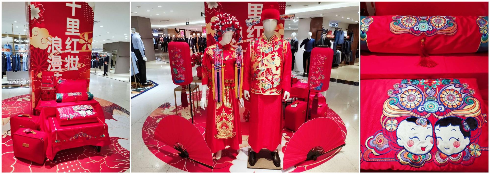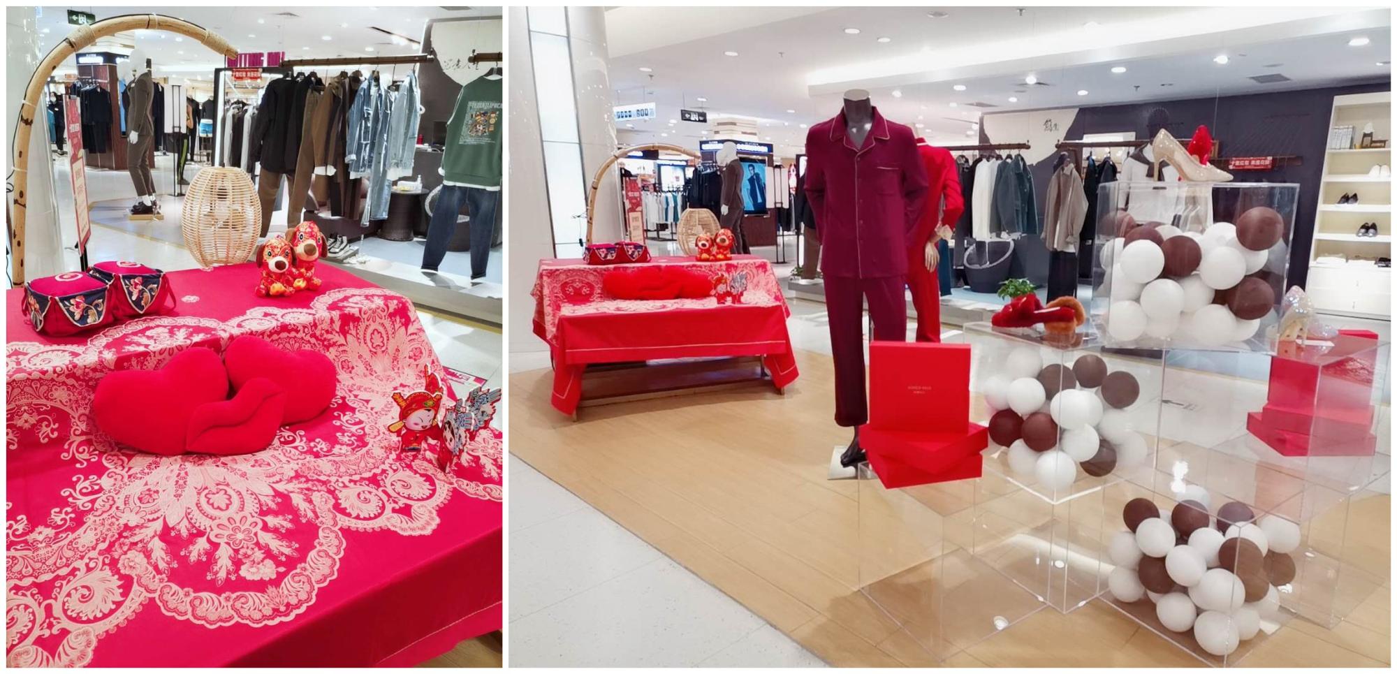 本次活動(dòng)圍繞“新人步入神圣的殿堂——新人回門——浪漫之旅——雙回新家”4大服務(wù)情景展開,開設(shè)了全新的體驗(yàn)場景。展示區(qū)將男女裝、床品、鞋品、內(nèi)衣5大品類,15個(gè)品牌的商品集合于一體,不僅提高了商場內(nèi)顧客的駐足觀光率,同時(shí)也提高了成交率。