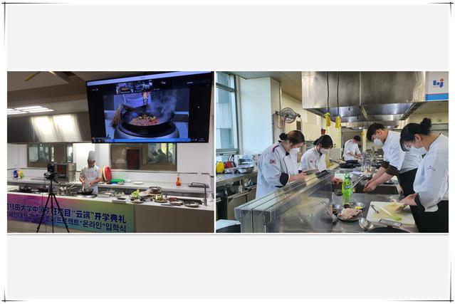 9月21日中午,2020年韓國彗田大學中國烹飪項目——中國魯菜網絡教學“云端”開學典禮在青島酒店學院中餐實訓室舉行。