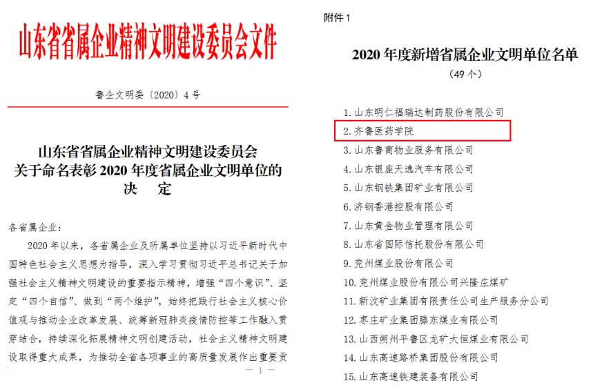12月3日,從《山東省省屬企業(yè)精神文明建設委員會關于命名表彰2020年度省屬企業(yè)文明單位的決定》文件獲悉,學院被評為省屬企業(yè)文明單位。
