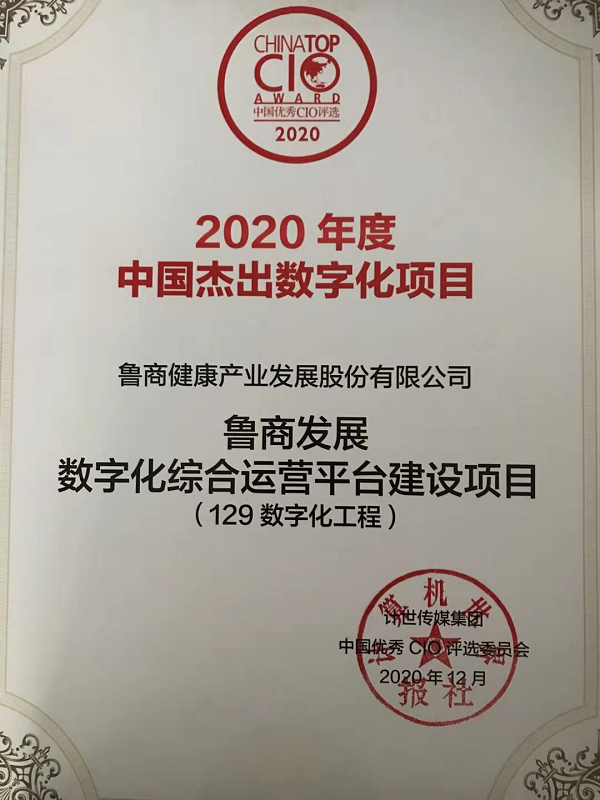 12月19日,“中國(guó)CIO高峰論壇暨2020年度中國(guó)優(yōu)秀CIO頒獎(jiǎng)典禮”在北京舉行。魯商發(fā)展數(shù)字化綜合運(yùn)營(yíng)平臺(tái)建設(shè)項(xiàng)目(簡(jiǎn)稱129工程)榮獲“2020年度中國(guó)杰出數(shù)字化項(xiàng)目”獎(jiǎng),魯商發(fā)展首席信息官董勤林榮獲“2020年度中國(guó)杰出CIO TOP5”稱號(hào)。