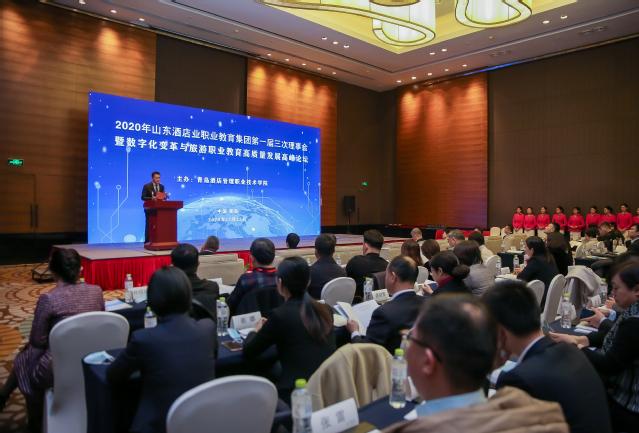 12 月 22 日,由青島酒店學(xué)院牽頭成立的山東現(xiàn)代酒店業(yè)職業(yè)教育集團(tuán)舉行一屆三次理事會(huì)暨數(shù)字化變革與旅游職業(yè)教育高質(zhì)量發(fā)展高峰論壇,78家職教集團(tuán)成員單位的140余位嘉賓蒞臨參會(huì)。學(xué)院黨委書記李達(dá),學(xué)院院長、山東酒店業(yè)職業(yè)教育集團(tuán)理事長姜玉鵬,中國旅游教育協(xié)會(huì)教育分會(huì)秘書長劉莉莉出席會(huì)議并致辭,學(xué)院黨委副書記王鑫主持會(huì)議。