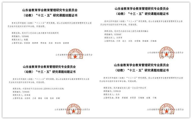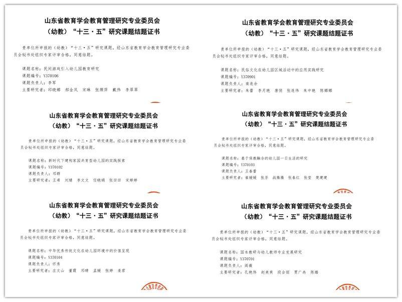 銀座幼教積極開展各類教科研課題研究,在“十三五”課題研究中,由山東省教育學(xué)會(huì)教育管理研究專業(yè)委員會(huì)(幼教)立項(xiàng)的10項(xiàng)課題,歷經(jīng)三年多深入持續(xù)的研究,均已通過專家鑒定,順利結(jié)題。