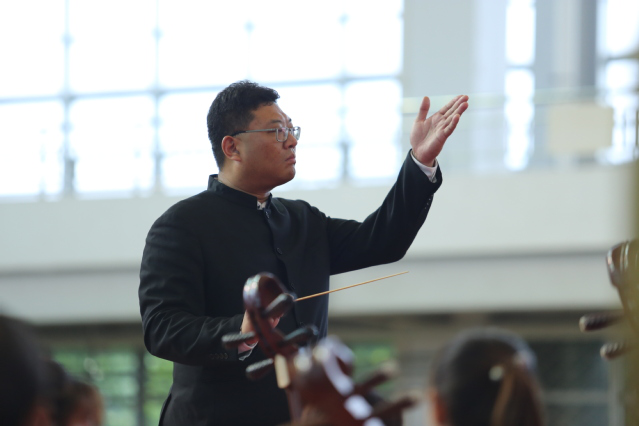 音樂會(huì)在民族管弦樂合奏《北京喜訊到邊寨》中拉開序幕。演奏家們演奏了《瑤族舞曲》《二泉映月》《賽馬》等大眾耳熟能詳?shù)拿褡逍?,帶來了歡快悠揚(yáng)、熱烈活潑的嗩吶對(duì)奏《正月十五鬧雪燈》等精彩曲目。音樂會(huì)中不僅有傳統(tǒng)的民樂演奏,還融入了歌手及新民樂的演出形式,側(cè)重觀賞性、普及性與藝術(shù)性。其中,現(xiàn)代新民樂《十面埋伏》《彝族舞曲》,讓在座師生對(duì)不同民族音樂的魅力有了全新的感受;《南湖的船,黨的搖籃》《不忘初心》用民族的聲音唱響黨的百年歷史,謳歌黨的豐功偉績,將音樂會(huì)推上了高潮。音樂會(huì)尾聲,一曲《我的祖國》音韻裊裊、蕩氣回腸,表達(dá)了對(duì)祖國最深沉的愛與祝福。在熱烈的掌聲和歡呼聲中,本場民族音樂會(huì)圓滿落幕。演出過程中,樂團(tuán)相關(guān)負(fù)責(zé)人現(xiàn)場介紹樂器、講解曲目,面向師生普及了民族音樂知識(shí)。