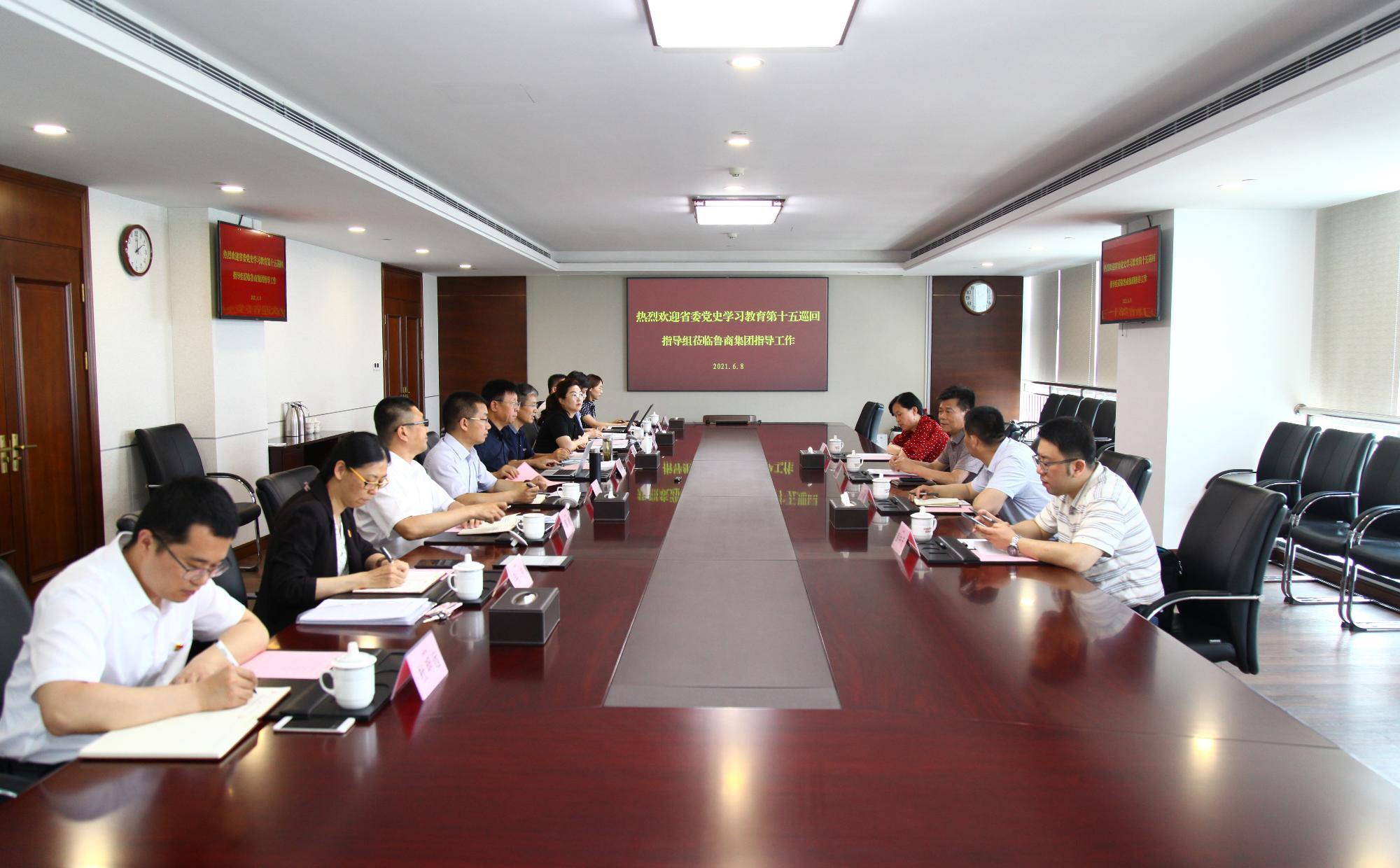 6月8日,省委黨史學習教育第十五巡回指導組副組長、棗莊市行政學院專職副院長賀茂廣一行4人到魯商集團指導工作并座談。魯商集團黨委黨史學習教育領導小組副組長,集團黨委常委、董事、組織人力資源部部長李林,集團黨委黨史學習教育領導小組辦公室主任,集團政工教科部部長宋超參加座談。