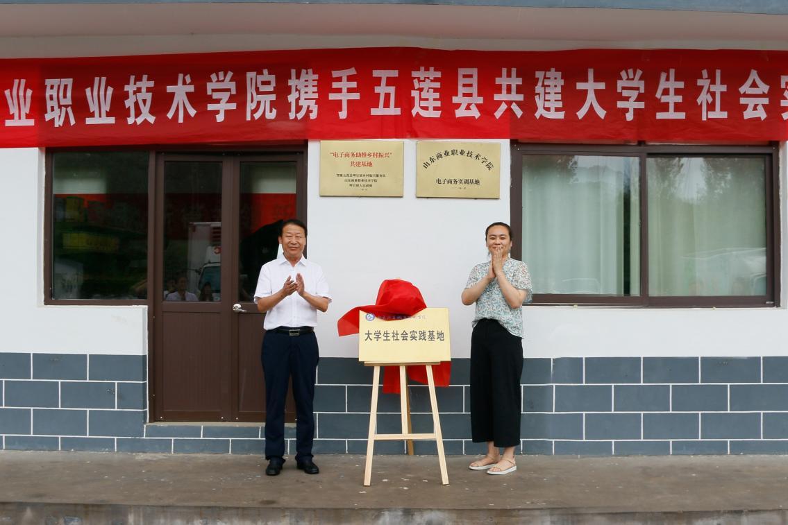 13日,學校黨委副書記侯功海與日照五蓮縣叩官鎮(zhèn)鎮(zhèn)長李霞為基地揭牌。省派鄉(xiāng)村振興服務隊隊長蔣文、五蓮縣政協(xié)副主席烏云海、五蓮縣商務局副局長周建軍、山東商院師生代表、崮寺頭村村委成員參加揭牌儀式。