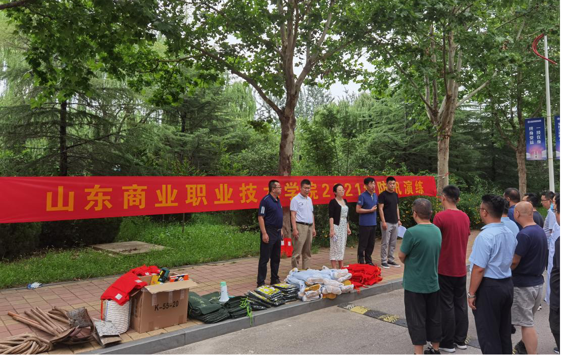 7月21日,山東商院開展防汛強險應急演練活動,提高防汛搶險的反應和應急處置能力。院長王鑫赴現場指導。