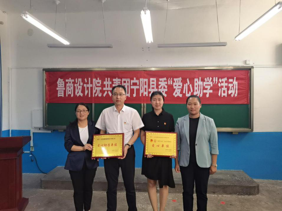 5月30日,魯商服務(wù)設(shè)計院黨支部聯(lián)合寧陽團縣委赴鄉(xiāng)飲鄉(xiāng)開展“愛心助學(xué)”活動,將支部黨員、發(fā)展對象、入黨積極分子及團員為10名困難學(xué)生捐獻(xiàn)的獎學(xué)金送到鄉(xiāng)飲鄉(xiāng)韋周小學(xué)孩子手中,并為韋周小學(xué)和沙河小學(xué)捐獻(xiàn)課外書籍。寧陽縣委副書記蘇偉麗表示,希望雙方繼續(xù)加強溝通交流,在城市更新、鄉(xiāng)村振興等業(yè)務(wù)領(lǐng)域深度合作,實現(xiàn)互利共贏。寧陽團縣委授予魯商服務(wù)設(shè)計院“希望小屋”兒童關(guān)愛項目“愛心單位”、“愛心助學(xué)單位”等榮譽稱號。