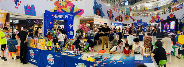 門店聯(lián)合艾克瑞特機(jī)器人教育舉辦“未來世界”科技節(jié)展示,活動(dòng)現(xiàn)場,會(huì)卷鼻子的大象、能打招呼的蝎子、生動(dòng)的眼鏡蛇等一系列智能機(jī)器人以及各式各樣的3D打印作品吸引眾多孩子的目光,大家隨著音樂與會(huì)跳舞的人形機(jī)器人一起搖擺,共享科技的奇妙與魅力。