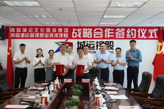 9月8日,青島酒店學院與青島城運文旅集團舉行校企戰略合作簽約儀式。青島城運控股集團黨委書記、董事長劉學亮,副總經理彭麗華,青島城運文旅集團黨委副書記、總經理秦永亮,青島酒店學院院長姜玉鵬、副院長張宗國出席活動。