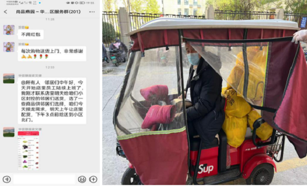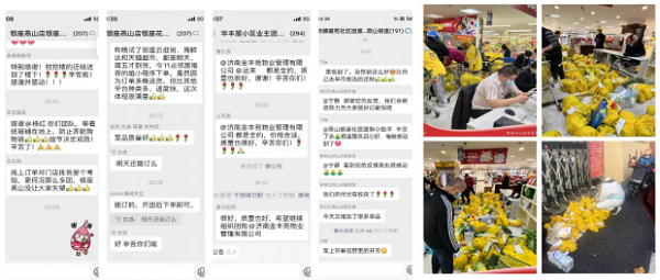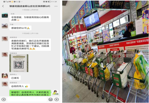 11月下旬,銀座濟南燕山店周邊多個社區陸續封控,門店第一時間組建近20個社區群,并以線上線下相結合的形式組建社區保供小分隊,配貨、打包、配送、線上統計、信息反饋,大家分工協作,封控在家的員工也主動認領任務,承擔起本社區內的配送任務。期間,不論寒潮來襲還是晝夜加班,門店所有員工都鼓足干勁、毫無怨言,全力確保所有民生物資準時足量送到居民手中。同時,門店還定期通過社區群征集群眾意見,不斷豐富商品種類,截至目前,門店社區服務最高日配送243單,得到廣泛好評。