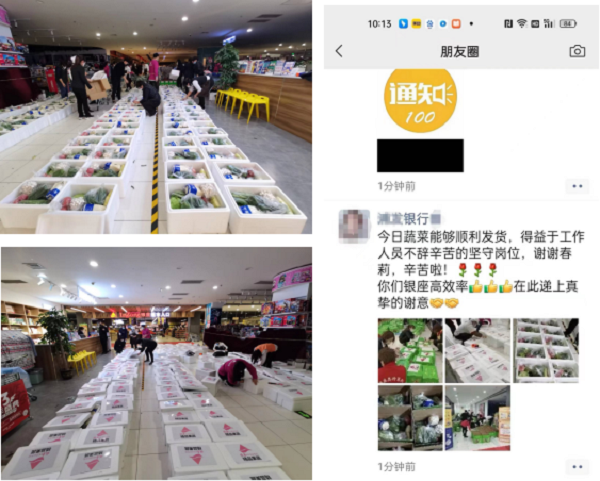 11月28日17時,銀座濟南七里山店接到某單位訂購的355份蔬菜包緊急團購需求,要求次日9點前送到。時間緊、任務重,門店迅速行動、統籌推進,主動克服因疫情導致的人手不足等困難,廣大黨員干部沖鋒在前,備貨、分揀、驗貨、打包裝箱......在12小時內保質保量完成此次保供任務,受到需求單位的高度贊揚。