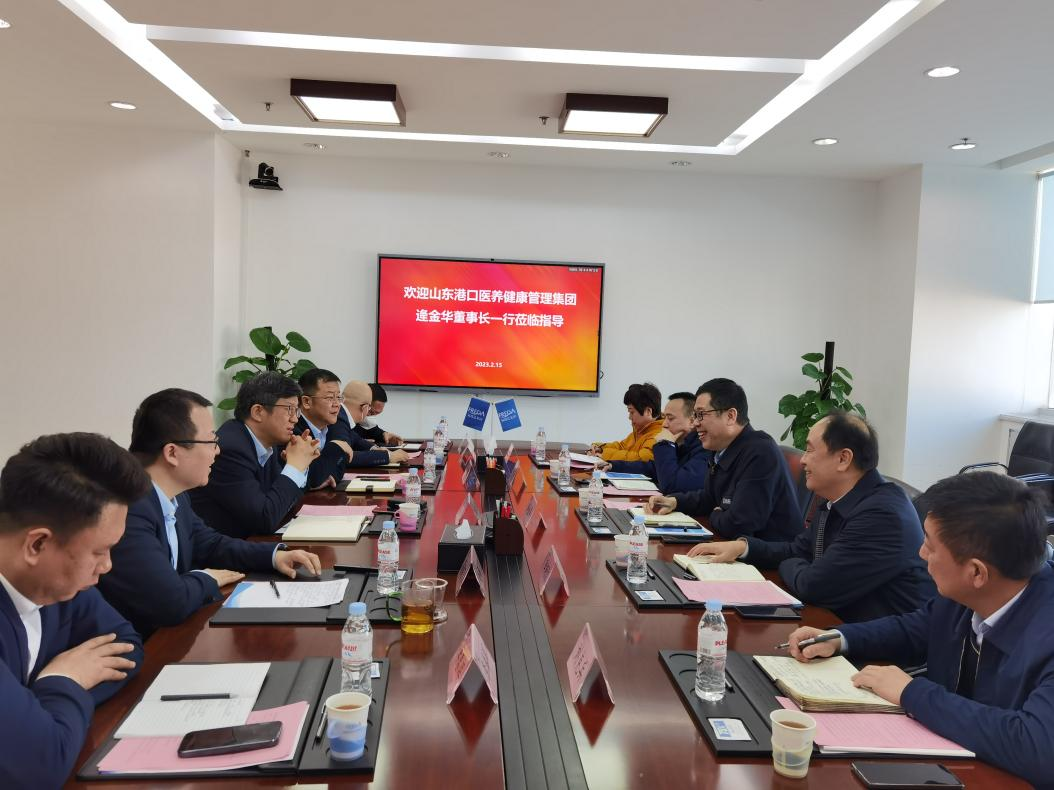 2月15日,山東港口醫養健康管理集團有限公司(簡稱港口醫養)黨委書記、董事長逄金華一行到福瑞達調研交流。魯商發展黨委書記、董事長兼福瑞達黨委書記、董事長賈慶文,福瑞達總經理高鵬飛陪同調研。