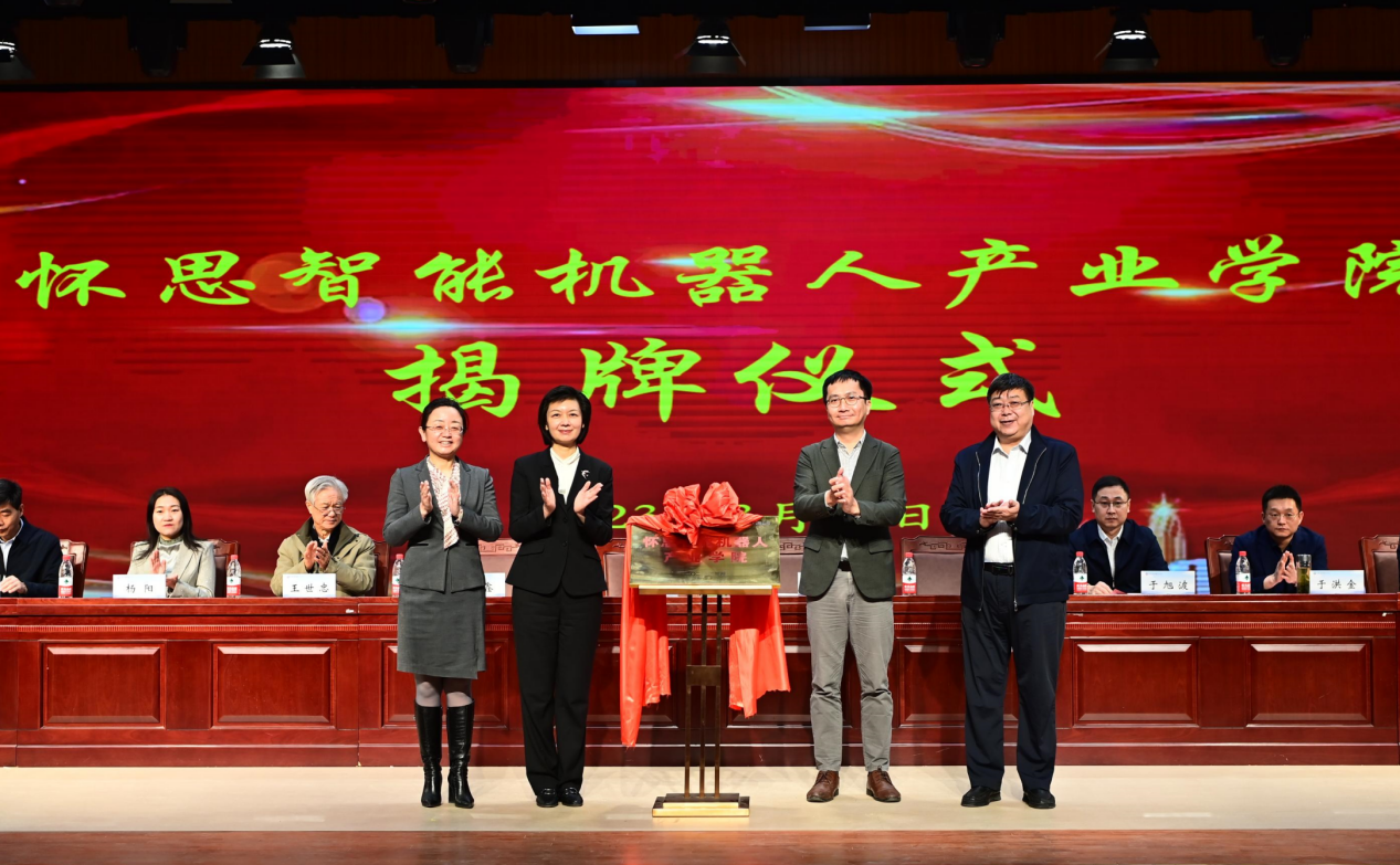 3月15日,山東商院舉行懷思智能機(jī)器人產(chǎn)業(yè)學(xué)院揭牌儀式暨第四屆智創(chuàng)論壇。濟(jì)南市僑聯(lián)黨組書記、主席米文芃,懷思人工智能與產(chǎn)業(yè)發(fā)展研究院院長陳圖川,山東商院黨委書記張志東,黨委副書記、院長王鑫出席,黨委副書記宋超主持。