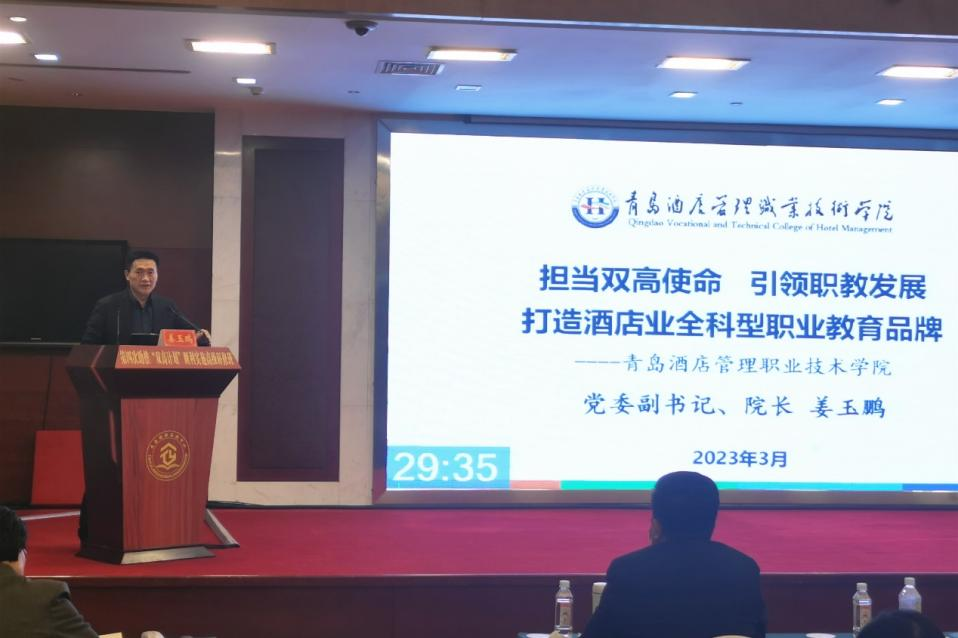 3月20日至24日,助推“雙高計(jì)劃”順利實(shí)施(2023)高級(jí)研修班(第六期)舉辦。青島酒店學(xué)院院長(zhǎng)姜玉鵬在會(huì)上作題為《擔(dān)當(dāng)雙高使命 引領(lǐng)職教發(fā)展 打造酒店業(yè)全科型職業(yè)教育品牌》的典型經(jīng)驗(yàn)分享。