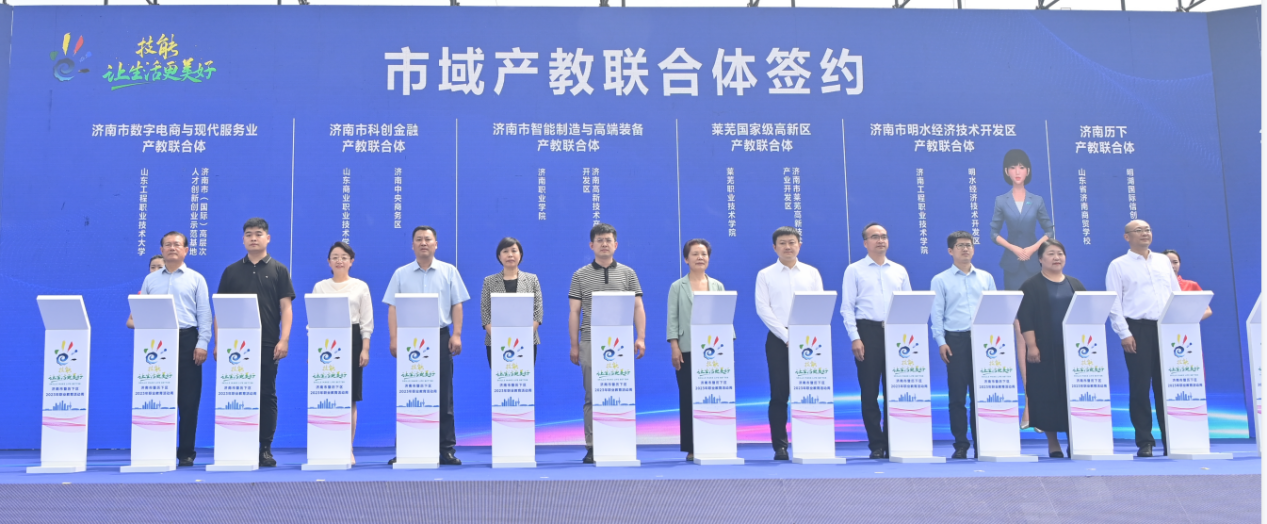 5月18日,在濟(jì)南市暨歷下區(qū)2023年職業(yè)教育活動周啟動會上,山東商院黨委副書記、院長王鑫代表學(xué)校與濟(jì)南中央商務(wù)區(qū)簽約成立濟(jì)南市“科創(chuàng)金融”產(chǎn)教融合聯(lián)合體。