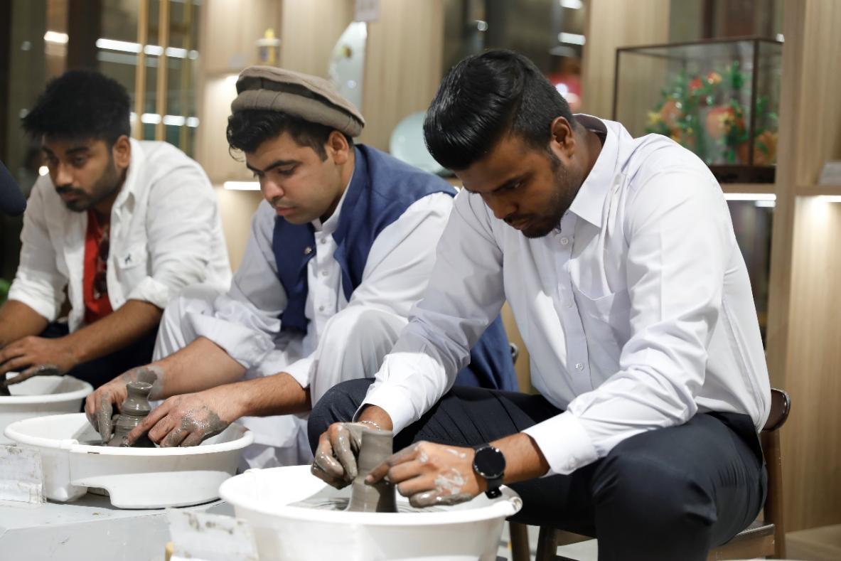 近日,來(lái)自巴基斯坦、孟加拉國(guó)、也門等國(guó)家的16名山東商院外籍師生參觀山東老字號(hào)暨非遺文化體驗(yàn)館,在專業(yè)老師的指導(dǎo)下,了解并體驗(yàn)陶瓷拉胚、魯繡、掐絲琺瑯、手工和香等非遺項(xiàng)目。