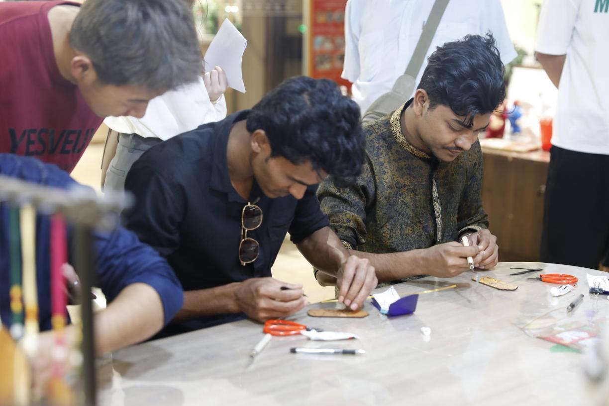 掐絲琺瑯是最具中國(guó)特色的傳統(tǒng)手工藝品之一,在老師的帶領(lǐng)下,外籍師生體驗(yàn)了涂膠、掐絲、調(diào)沙、固沙、風(fēng)干等環(huán)節(jié)。“這真的太精彩了,掐絲琺瑯給我?guī)?lái)了非常有趣的體驗(yàn)。”來(lái)自巴基斯坦的外籍教師阿潤(rùn)激動(dòng)地說(shuō)道。