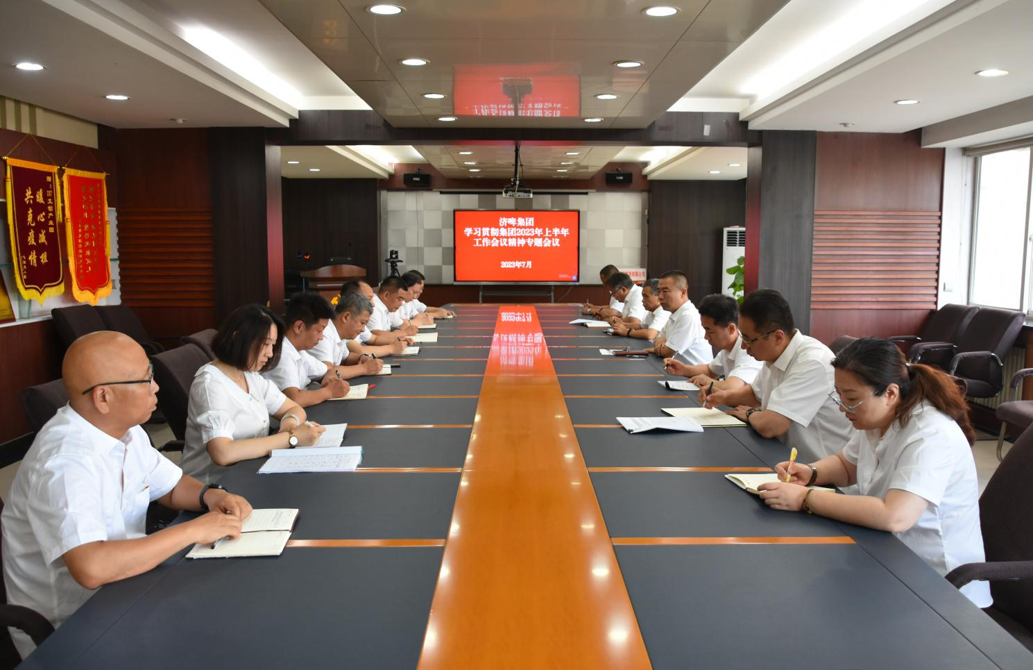 會議全文傳達學習了魯商集團黨委書記、董事長王緒超在2023年上半年工作會議上作的題為《以主題教育成效推動集團高質量發展 確保圓滿完成全年各項任務指標》的講話精神,以及集團黨委副書記、董事、副總經理朱華建對集團上半年經營情況的通報。與會人員結合工作實際進行學習討論。大家一致認為,講話凝聚思想、鼓舞士氣、振奮精神,既系統分析總結,又深刻剖析問題,既科學研判形勢、又總體安排部署,為濟啤集團各項工作進一步指明方向,是企業改革發展的根本遵循和行動指南。
