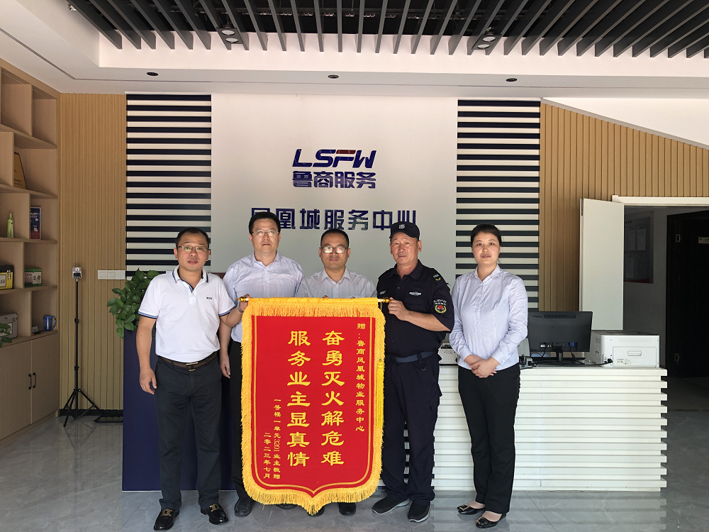 7月17日,魯商服務(wù)唐冶鳳凰城業(yè)主王先生為社區(qū)物業(yè)服務(wù)中心送來一面錦旗,感謝項目工作人員及時發(fā)現(xiàn)火情并奮勇滅火。
