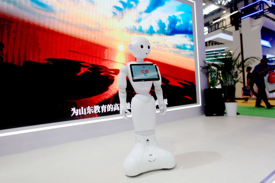 在教博會(huì)現(xiàn)場(chǎng),山東商職學(xué)院自主研發(fā)的機(jī)器人正在與觀展者互動(dòng),會(huì)跳舞、還能實(shí)現(xiàn)對(duì)話。“這是我們學(xué)校科研團(tuán)隊(duì)自去年開始研發(fā)的一款機(jī)器人,后期可用作導(dǎo)覽、健康養(yǎng)老等應(yīng)用場(chǎng)景。”學(xué)院應(yīng)用電子系大一學(xué)生李延航對(duì)記者說。