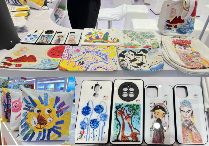 展區(qū)一角,一排排色彩繽紛的帆布包、鼠標(biāo)墊、抱枕以及T恤衫,頻頻引得觀展者前來詢問。“這些物品上的圖案,都是銀座幼教的小朋友們手繪的,最小的年齡不到3歲,最大的是6歲。”參展教師介紹道。作為全國(guó)幼教領(lǐng)軍品牌,銀座幼教還通過特色課程現(xiàn)場(chǎng)展示,讓眾多觀展者對(duì)其有了更加深入的認(rèn)知。