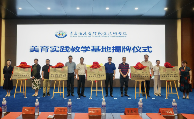 9月19日下午,青島酒店學院舉行美育實踐教學基地揭牌儀式,青島市文聯(lián)主席王紹波,山東省民俗學會常務理事朱振華,青島市文旅局非遺處處長馮耀東,青島酒店學院校長姜玉鵬出席。