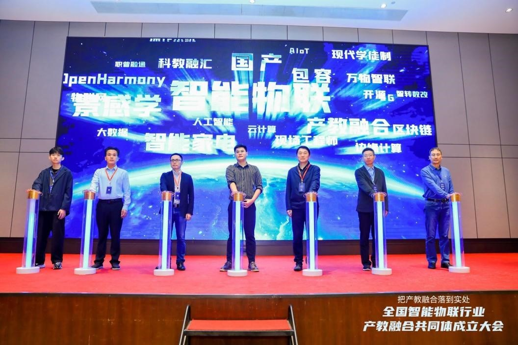 本次大會(huì)圍繞“以產(chǎn)促教、以教興產(chǎn),把智能物聯(lián)行業(yè)產(chǎn)教融合落到實(shí)處”主題,舉行了共同體成立啟動(dòng)儀式、圓桌論壇,正式發(fā)布了共同體工作規(guī)劃及首個(gè)重大產(chǎn)業(yè)課題專項(xiàng),并為理事長、副理事長及理事單位授牌,部分與會(huì)專家作專題報(bào)告。