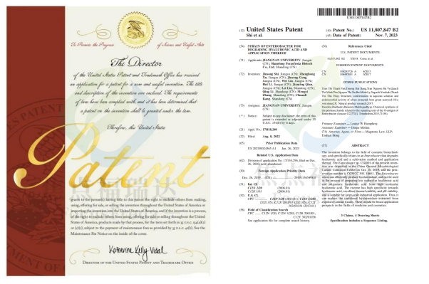 近日,焦點福瑞達與江南大學(xué)聯(lián)合申報的“Strain of enterobacter for degrading hyaluronic acid and application thereof”(一種腸桿菌及其應(yīng)用)獲美國發(fā)明專利授權(quán)。