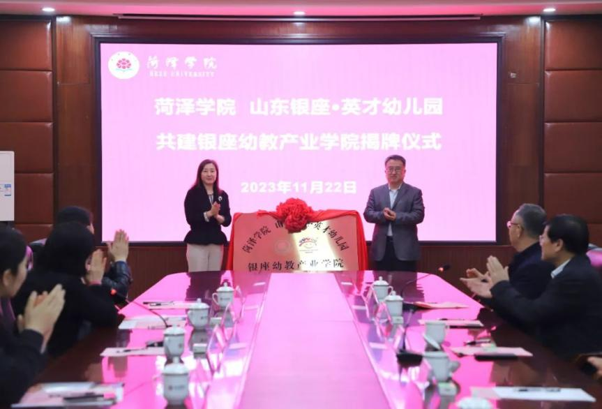 近日,銀座幼教與菏澤學院合作協(xié)議簽訂儀式舉行。銀座幼教黨委書記、董事長袁霞與菏澤學院黨委委員、副校長孟令美共同為菏澤學院銀座幼教產(chǎn)業(yè)學院揭牌。
