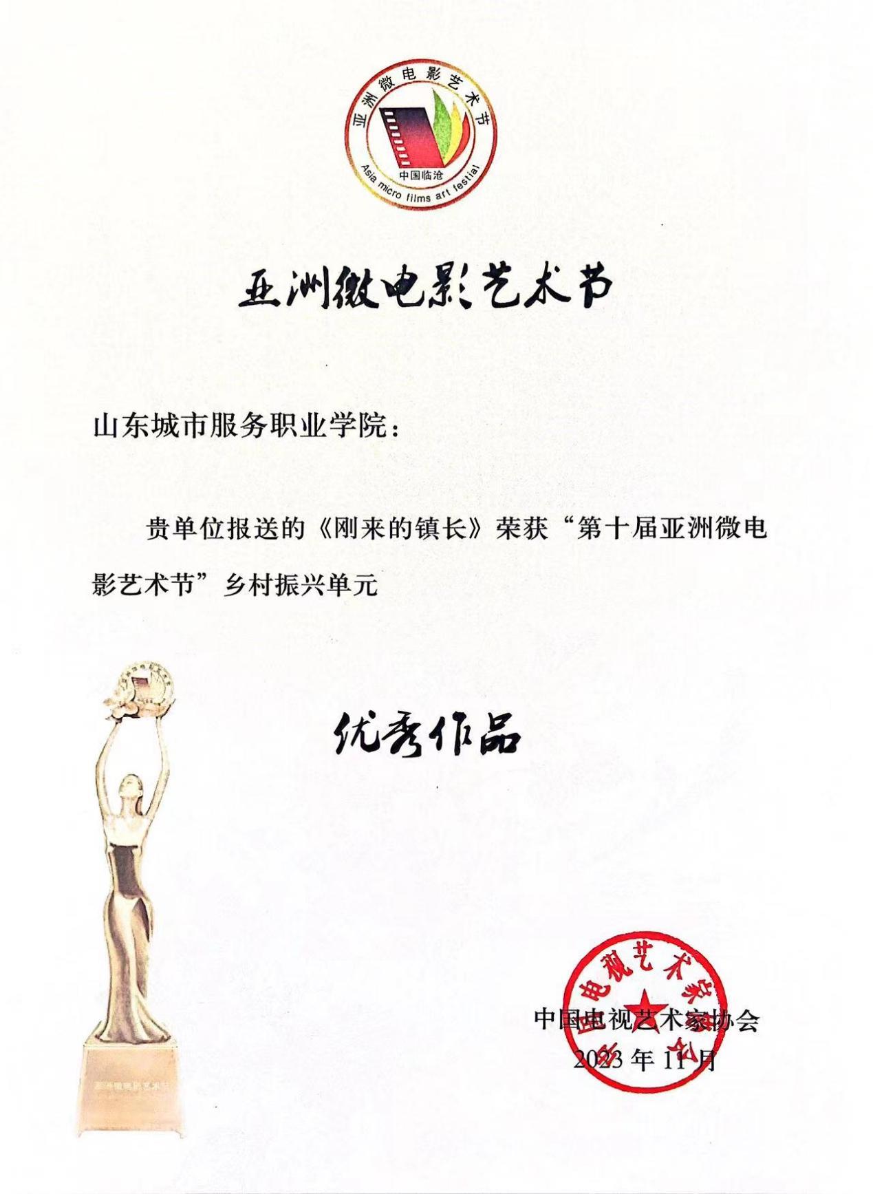 近日,第十屆亞洲微電影藝術(shù)節(jié)舉行,由山東城市服務(wù)職院出品的短片《剛來的鎮(zhèn)長》在眾多優(yōu)秀作品中脫穎而出,榮獲鄉(xiāng)村振興單元優(yōu)秀作品。