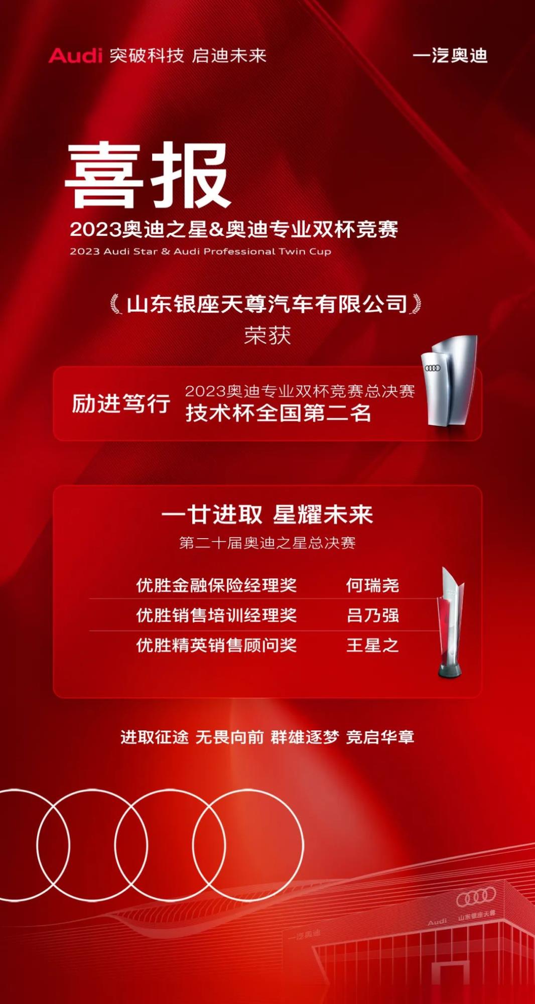 從心出發(fā),卓·悅無盡。奧迪雙杯競賽是展示經(jīng)銷商售后服務(wù)綜合實(shí)力的競技、交流和分享平臺。銀座天尊售后團(tuán)隊(duì)?wèi){借專業(yè)的技術(shù)知識和強(qiáng)勁的實(shí)操能力斬獲“2023年奧迪專業(yè)雙杯競賽-技術(shù)杯第二名”的殊榮。