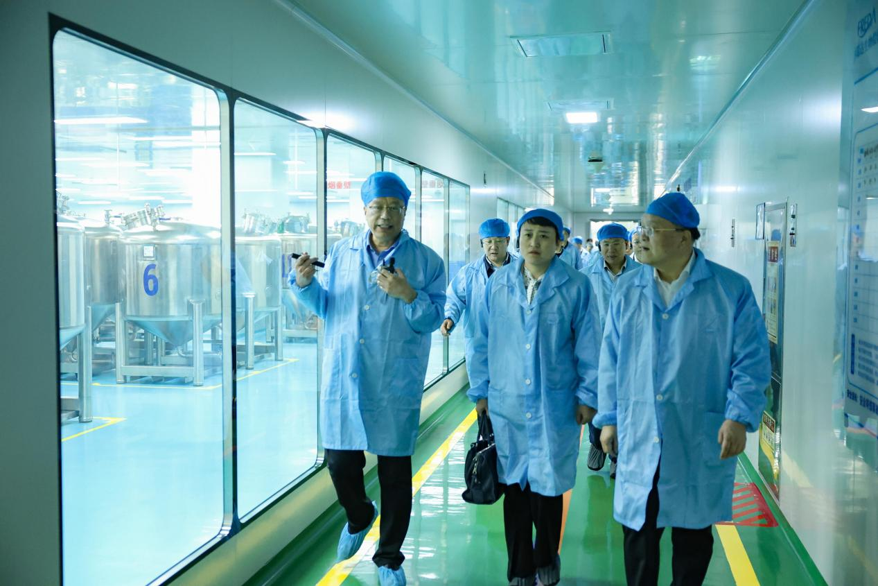 與會代表首先參觀了福瑞達智美科創園生產基地,詳細了解企業的生產經營情況。走進園區,一座現代化的透明工廠、智能工廠映入眼簾,在化妝品配制車間,只需一個智能操作面板便可完成產品智能配方與配制操作,日配制產量達60噸以上;在高速運轉的面膜智能灌裝機上,一片片面膜只需要0.4秒便可制作完成;檢驗合格、包裝好的成品,正一批批轉移至物流車,即將送到全國各地的消費者手中。工廠現場的火熱氛圍感染著每位參觀者,折射出當下濟南工業經濟的蓬勃動力與活力。