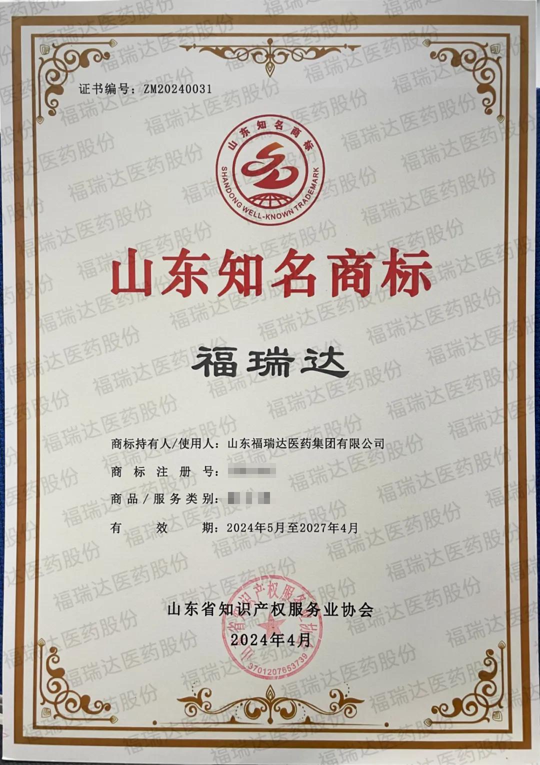 近日,山東知名商標(biāo)授牌儀式在“4.26世界知識產(chǎn)權(quán)日”主題活動暨軍創(chuàng)市場主體知識產(chǎn)權(quán)轉(zhuǎn)化運用大會上舉行,“福瑞達(dá)”被認(rèn)定為“山東知名商標(biāo)”。