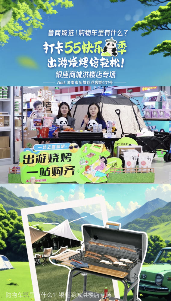 近日,魯商科技旗下魯商臻選直播團(tuán)隊(duì)聯(lián)合銀座集團(tuán)在銀座濟(jì)南洪樓店開展“打卡55快樂季,出游燒烤倍輕松!”主題直播活動(dòng),觀看人數(shù)創(chuàng)歷史新高。