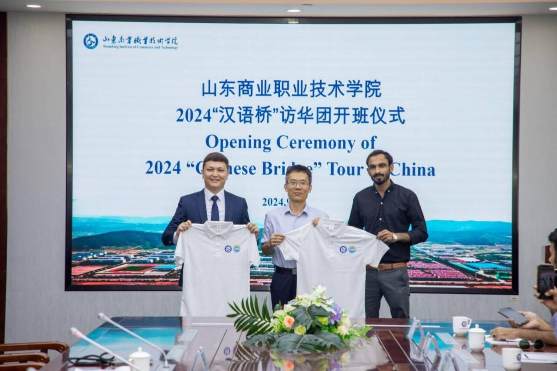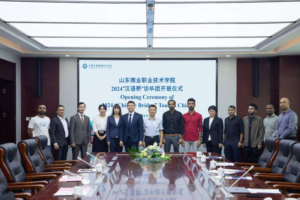 近日,由教育部中外語言交流合作中心主辦、山東商職學(xué)院承辦的2024“漢語橋”訪華團(tuán)開班儀式在山東商職學(xué)院舉行。烏茲別克斯坦國際農(nóng)業(yè)大學(xué)農(nóng)業(yè)科技與商業(yè)學(xué)院院長阿里莫夫·賈洪吉爾一行5人、巴基斯坦-中國職業(yè)技術(shù)學(xué)院7名教育工作者參加開班儀式。