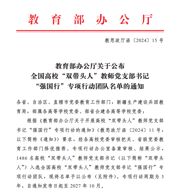 全國(guó)高校“雙帶頭人”教師黨支部書(shū)記“強(qiáng)國(guó)行”專(zhuān)項(xiàng)行動(dòng),旨在落實(shí)立德樹(shù)人根本任務(wù),深入貫徹落實(shí)教育部黨組關(guān)于高校“雙帶頭人”教師黨支部書(shū)記(以下簡(jiǎn)稱(chēng)高校“雙帶頭人”)培育工作的部署要求,充分發(fā)揮高校“雙帶頭人”的示范引領(lǐng)作用,引導(dǎo)廣大師生在以中國(guó)式現(xiàn)代化全面推進(jìn)強(qiáng)國(guó)建設(shè)、民族復(fù)興偉業(yè)新征程上砥礪新?lián)?dāng),展現(xiàn)新作為。
