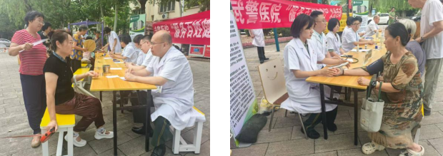 濟南銀座花園健身廣場上,山東武警醫院的6名資深醫師剛支起義診臺,就被業主團團圍住。來自中醫科、消化內科等5個科室的資深醫師耐心詢問居民病史,現場開具健康“處方”,血壓計與聽診器的聲音此起彼伏。