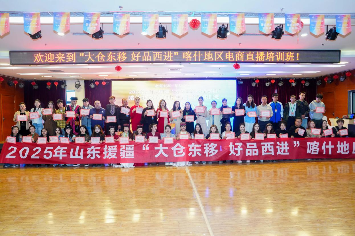 為深入落實山東援疆共建共享人才培養體系部署,搶抓直播 發展機遇,提升直播電商發展水平。10月21日,由魯商科技所屬創新研究院承辦的2025年山東援疆“大倉東移好品西進”喀什地區(首期)電商直播培訓班圓滿完成全部教學任務,順利結業。