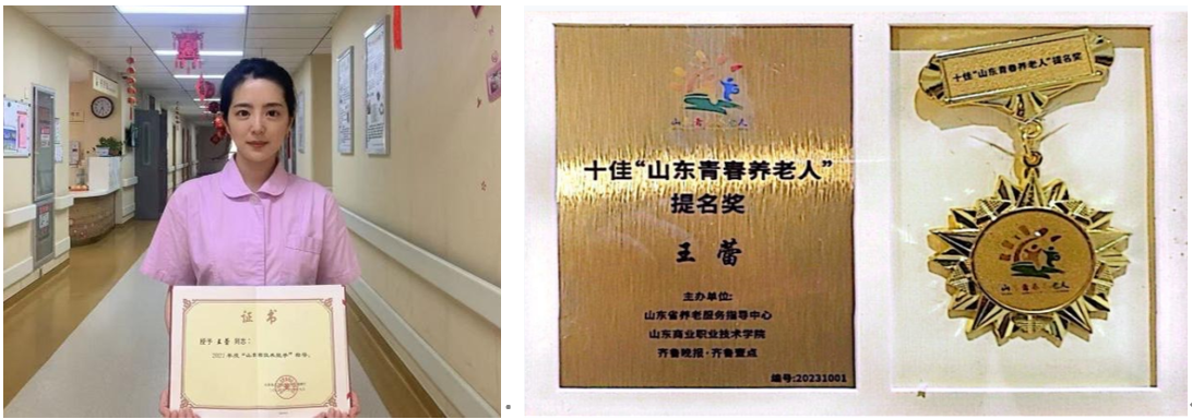 山東商職學院畢業(yè)生王蕾畢業(yè)后便投身養(yǎng)老行業(yè),深深扎根基層,始終堅守工作一線,專注高齡、失能半失能長者的照護服務,將專業(yè)知識化為有溫度的實踐,從一名普通的養(yǎng)老護理員穩(wěn)步成長為基層主管。憑借扎實的專業(yè)功底與精益求精的工匠精神,王蕾在多項職業(yè)技能競賽中取得突出成績,先后獲評“山東省技術能手”“濟南市最美養(yǎng)老護理員”“十佳山東青春養(yǎng)老人(提名獎)”等榮譽稱號,并被認定為“濟南市D類人才”,體現(xiàn)了過硬的專業(yè)素養(yǎng)與職業(yè)擔當。