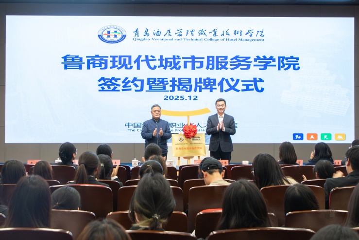 近日,青島酒店管理職院與魯商服務共建魯商現(xiàn)代城市服務學院正式揭牌。