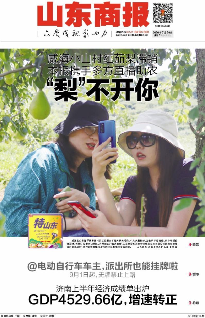 公益助農齊魯行,為愛下單“特山東”。山東商報傾力為扎根齊魯大地的“鄉村好品”代言,為打造鄉村振興的齊魯樣板助力。在由各種平臺得知農戶求助信息并溝通核實后,報社會派出“文字+直播團隊”,利用多個報道和銷售平臺啟動公益助農活動。活動形式除了“帶貨直播”,還包括報紙報道、將產品上架山東商報官方微店等,多管齊下,凸顯合力,為滯銷農產品打開銷路。