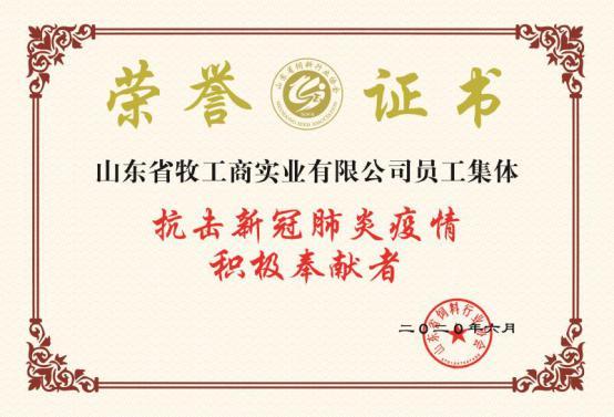 日前,牧工商被山東省飼料行業(yè)協(xié)會(huì)授予“抗擊新冠肺炎疫情積極奉獻(xiàn)者”稱號(hào)。